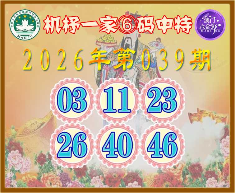 039期: 🍔『机杼一家』 🍔⑥码中特🍔【03.11.23.26.40.46】开:11