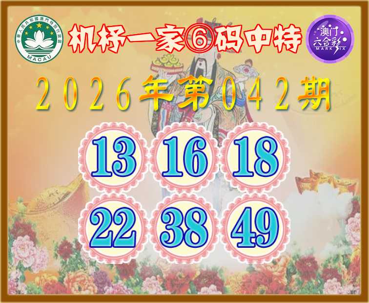042期: 🍔『机杼一家』 🍔⑥码中特🍔【13.16.18.22.38.49】开:16