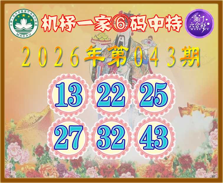 043期: 🍔『机杼一家』 🍔⑥码中特🍔【13.22.25.27.32.43】开:13