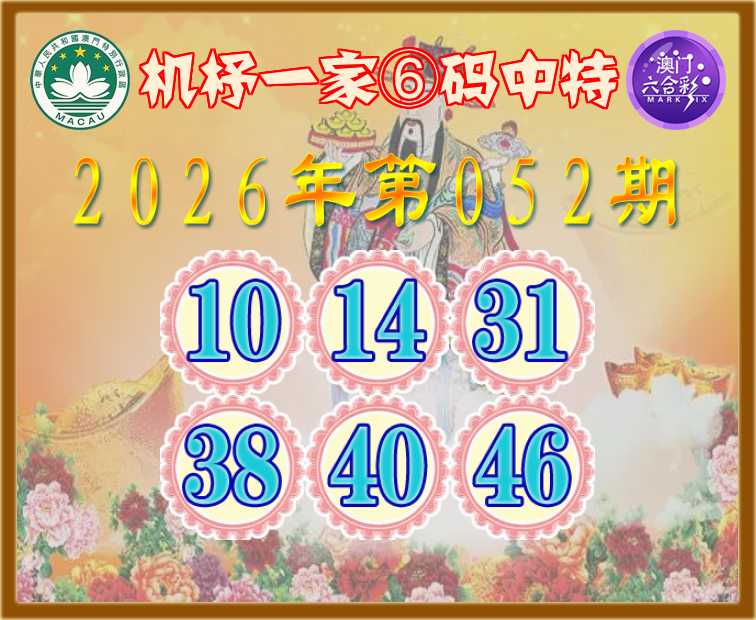 052期: 🍔『机杼一家』 🍔⑥码中特🍔【10.14.31.38.40.46】开:38