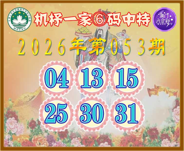 053期: 🍔『机杼一家』 🍔⑥码中特🍔【04.13.15.25.30.31】开:15