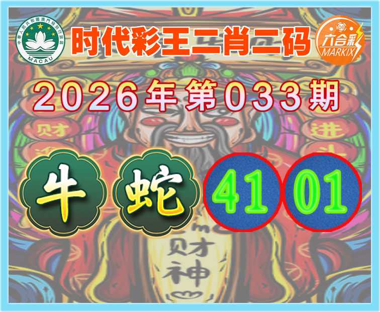 033期:【时代彩王】 🍟二肖二码🍟【蛇】【41.01】开:牛41