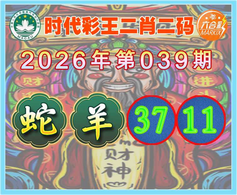 039期:【时代彩王】 🍟二肖二码🍟【蛇】【37.11】开:羊11