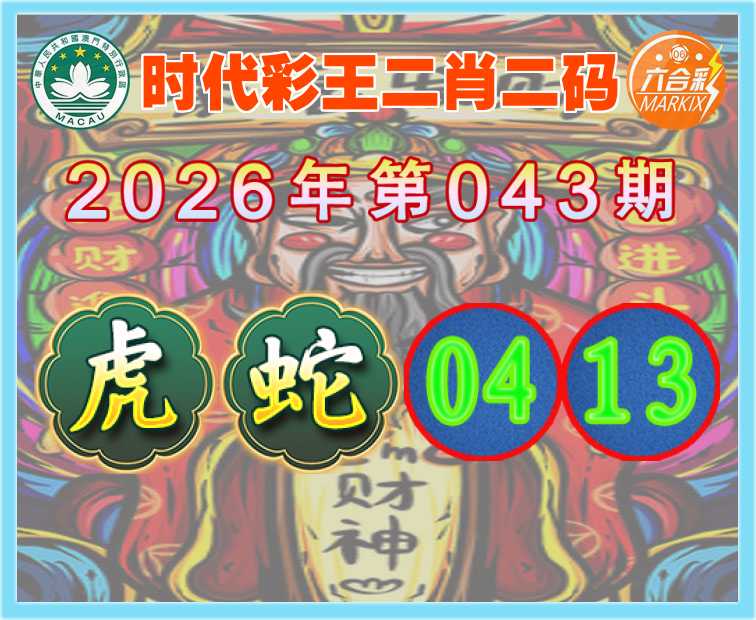 043期:【时代彩王】 🍟二肖二码🍟【虎】【04.13】开:蛇13