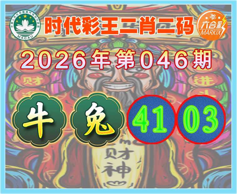 046期:【时代彩王】 🍟二肖二码🍟【牛】【41.03】开:兔03