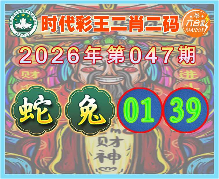 047期:【时代彩王】 🍟二肖二码🍟【蛇】【01.39】开:兔39