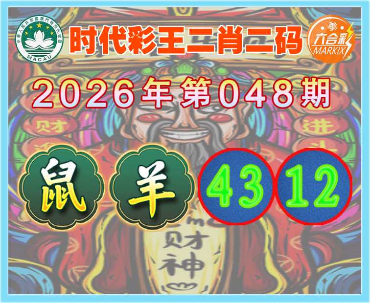 048期:【时代彩王】 🍟二肖二码🍟【鼠】【43.12】开:羊24