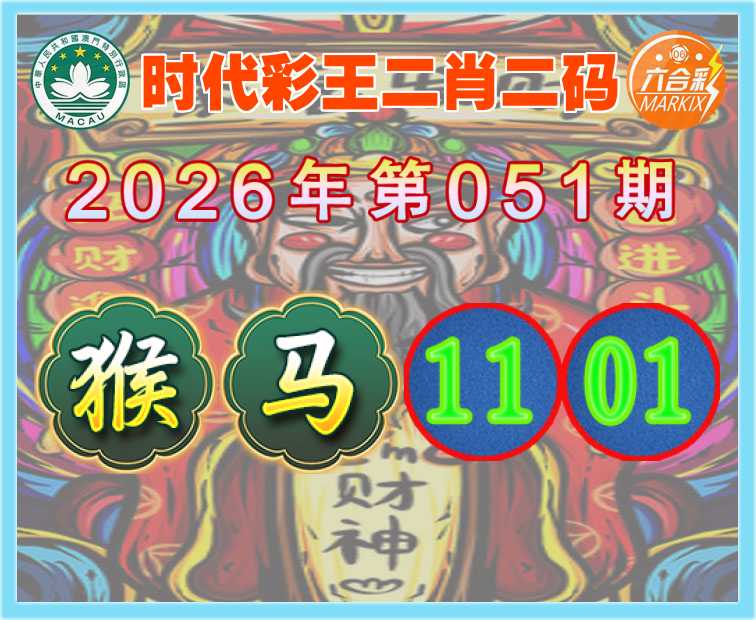 051期:【时代彩王】 🍟二肖二码🍟【猴】【11.01】开:马01