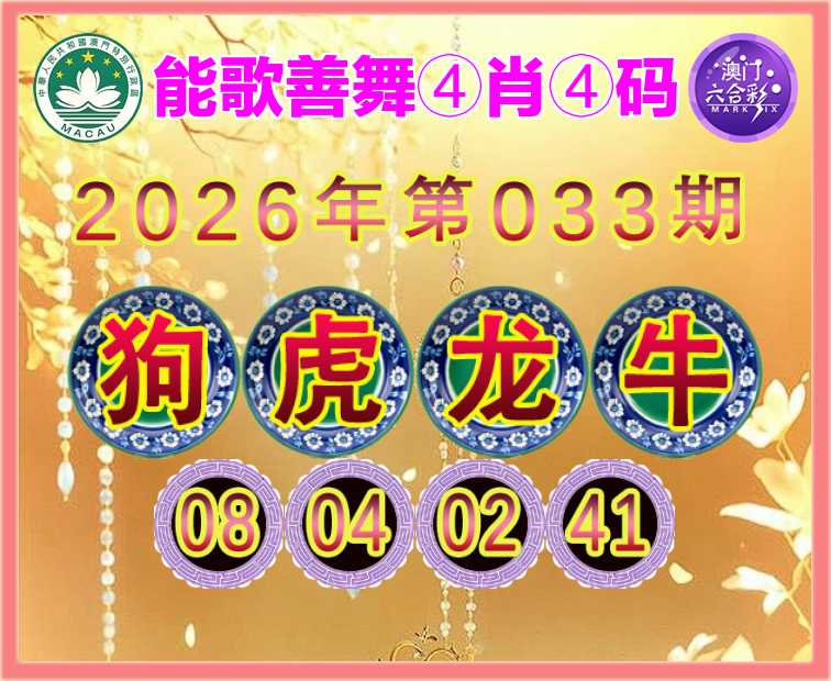 033期:《能歌善舞》 🧤④肖④码🧤【狗虎龙】【08.04.02.41】开:牛41