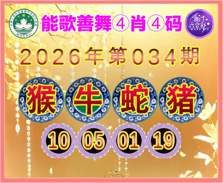 034期:《能歌善舞》 🧤④肖④码🧤【猴牛蛇】【10.05.01.19】开:猪19