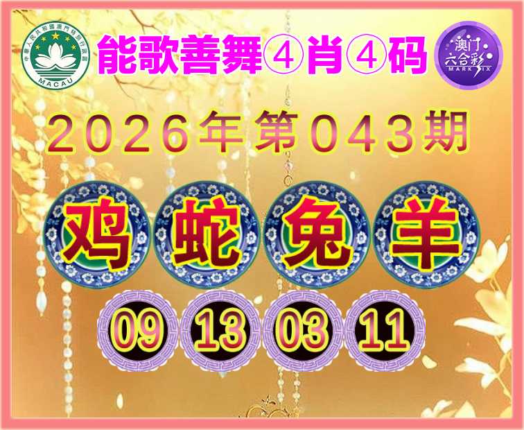 043期:《能歌善舞》 🧤④肖④码🧤【鸡兔羊】【09.13.03.11】开:蛇13