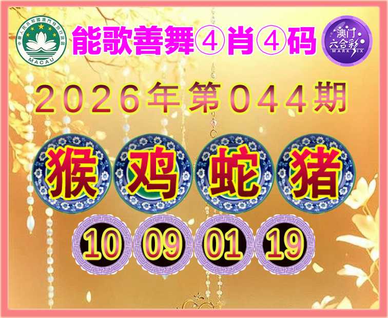 044期:《能歌善舞》 🧤④肖④码🧤【猴鸡蛇】【10.09.01.19】开:猪19