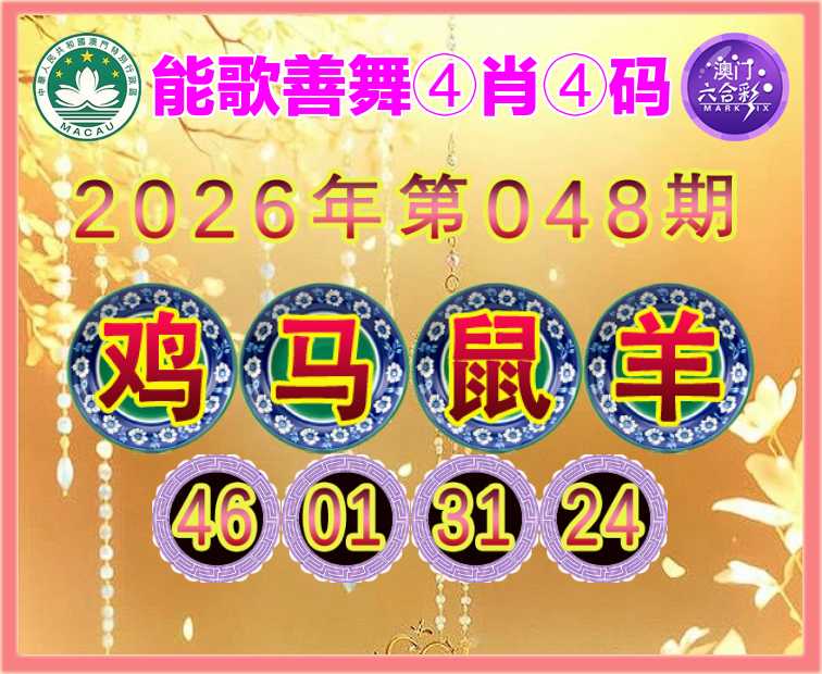 048期:《能歌善舞》 🧤④肖④码🧤【鸡马鼠】【46.01.31.24】开:羊24