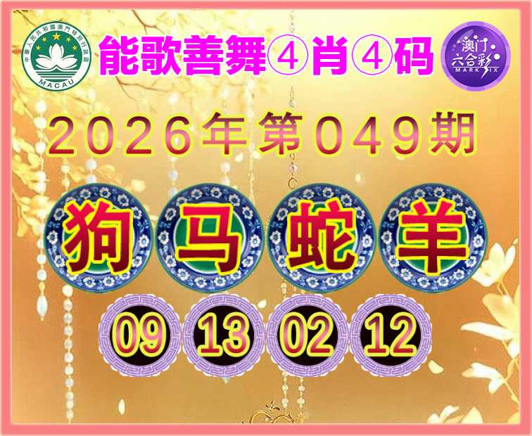 049期:《能歌善舞》 🧤④肖④码🧤【狗蛇羊】【09.13.02.12】开:马13