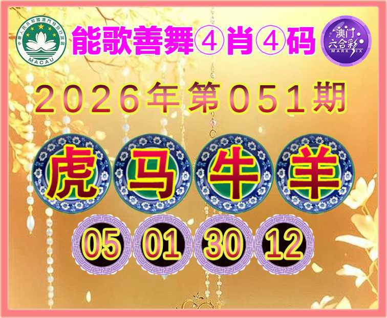 051期:《能歌善舞》 🧤④肖④码🧤【虎牛羊】【05.01.30.12】开:马01