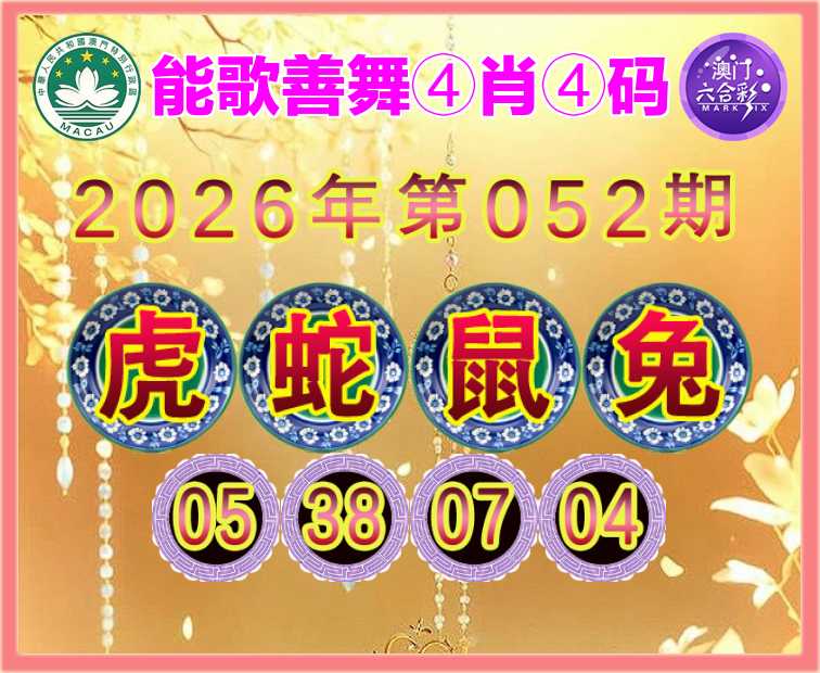 052期:《能歌善舞》 🧤④肖④码🧤【虎鼠兔】【05.38.07.04】开:蛇38