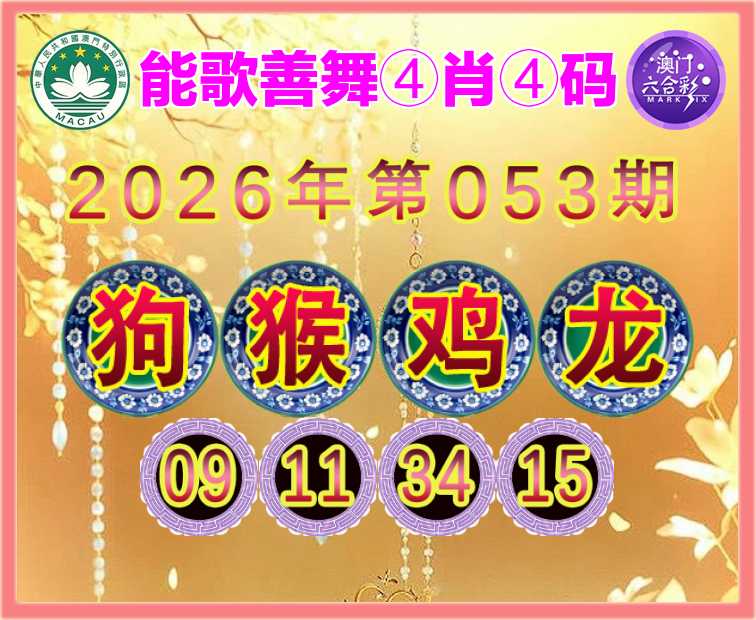 053期:《能歌善舞》 🧤④肖④码🧤【狗猴鸡】【09.11.34.15】开:龙15