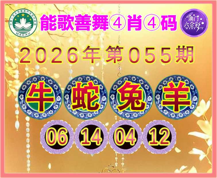 055期:《能歌善舞》 🧤④肖④码🧤【牛兔羊】【06.14.04.12】开:蛇14