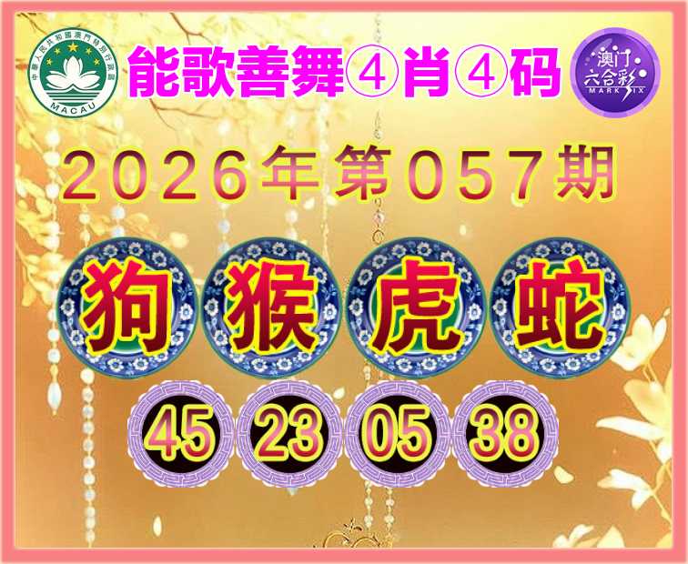 057期:《能歌善舞》 🧤④肖④码🧤【狗虎蛇】【45.23.05.38】开:猴23