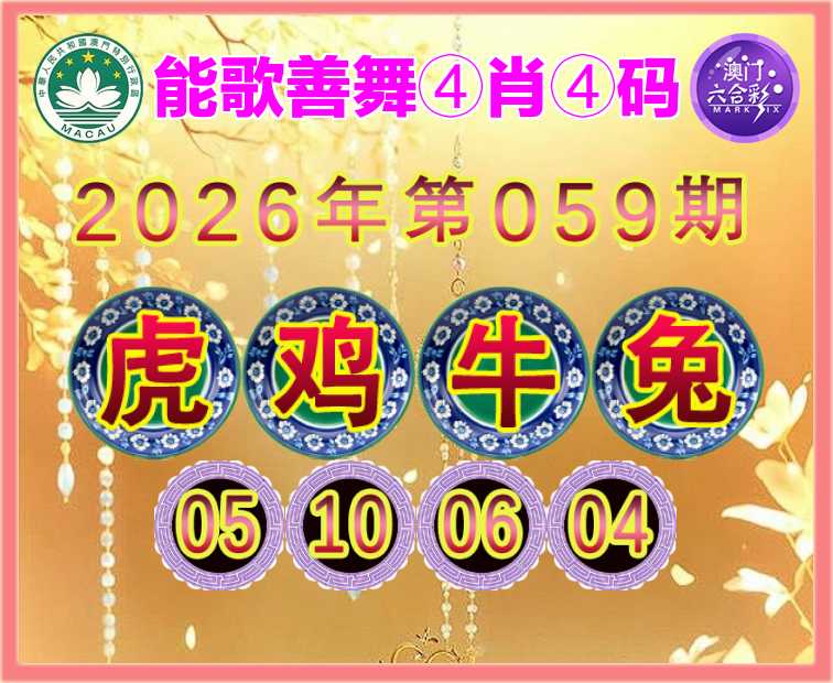 059期:《能歌善舞》 🧤④肖④码🧤【虎牛兔】【05.10.06.04】开:鸡10