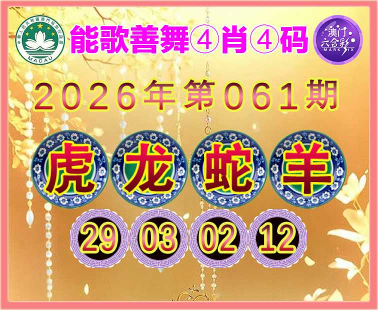 061期:《能歌善舞》 🧤④肖④码🧤【龙蛇羊】【29.03.02.12】开:虎29